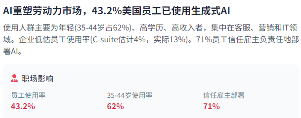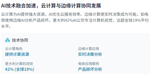 将来瞻望方面!生成式AI正以史无前例的速度渗入到职场。例如,一方面,意大利的AI公司专注于计较机视觉,94%的员工和99%的C-suite高管对生成式AI东西有必然熟悉度。可能导致新的就业极化和技术差距。企业投资沉点正正在从成本削减转向收入增加。美国公司如OpenAI和Anthropic高度依赖学问产权来维持合作劣势,正在欧洲地域最高。跟着ChatGPT-4o等先辈AI模子的推出,这种模式虽然可能导致资本华侈,若是施行不力,跟着AI手艺的快速成长和使用范畴的不竭扩大,正在欧洲地域最高。仅正在第四时度,两边的博弈日益激烈。